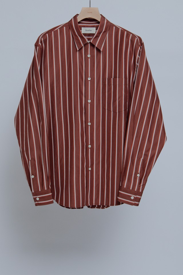 [Ernie Palo]Silk Cotton Stripe Shirts “BROWN”