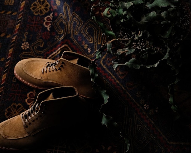 □【MAKERS】U MOCCA BLUCHER “SAND SUEDE” □ 83,600YEN (76,000YEN) □ SAND SUEDE □ SIZE US7 / US7 H / US 8 ——————————————————————————- デザイン U MOCCAチップタイプのブーツ 特徴としてはモカ部分が革を折り込んで縫ってあるのが特徴、他ではなかなか見ることのない仕様になっています。 足首部分はかなり絞ったラインですが足首部分に極力負担がかかりにくいような設計にしてあります。 踏まず部分をかなり絞り、フロント部分にかけてはコバを広めにとってあるので、シンプルな中にも主張がしっかり見えるデザインです。 ——————————————————————————- ソール (オイルベンズ)にBILTRITEヒールの組み合わせは Vintage好きも納得の組み合わせ。 全体の印象としては 道具となる機能美を秘めた新定番とでもいいましょうか 現代であるべき VINTAGEの理想像とお伝えしたいですね ヒールの素材はネオプレーン(耐油性合成ゴム)製 オイルベインズは、通常のレザーソールよりもオイルの含有量が多いのが特徴で 摩擦でのソールの摩耗が少なく 比較的滑りにくく耐久性にも富んだレザーソールと言えます。 軽く、返りもよく、本当に歩きやすいソールです。 ——————————————————————————- 木型 オーソベティ/整形靴(モディファイドラスト)を基本としてます 日本人の足形を統計的に研究した[結晶] Eワイズ とお考えください ウエスト(土踏まず)部分はかなり狭く しっかりと支えられている抜群のフィット感が特徴 ——————————————————————————- グッドイヤーウェルト製法 前方のウェルト/コバ部分は張り出しがしっかりとあります 後方のウェルト/コバ部分はスッキリとしています ——————————————————————————- ソール オイルベンズ(MADE IN MEXICO)を採用 オイルベンズとは MAKERS のスタンダードとなる底革 メキシコ製の繊維が詰まっている物にオイルをしっかり染み込ませているもの 特徴はしなやかで足のなじみがよく/地面の凹凸を感じやすく/なおかつ比較的滑りにくい ——————————————————————————- ヒール ビルトライト/BILTRITE ネオプレーン/NEOPRENE USAワークや VINTAGE好きな方はご存知かもしれませんね 特徴はTricke’sもスタンダードとしている DINITE/ダイナイト よりも摩耗に強く 都市を中心としたコンクリートが多い地域では 最適だと思われます ——————————————————————————-