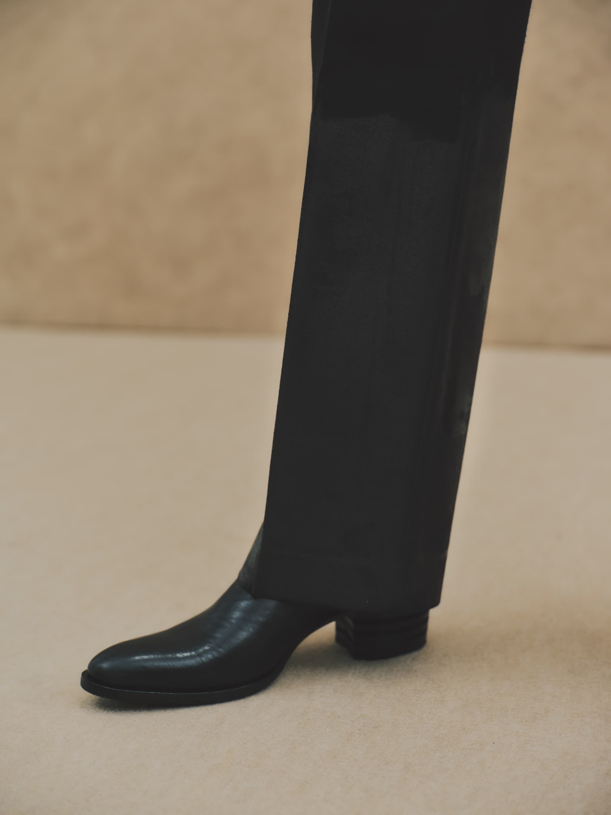 厳選された素材選び、メンズの伝統的な製図と、レディースの立体裁断を組み合わせた独自の設計により、美しいシルエットと快適な穿き心地を追求しています
