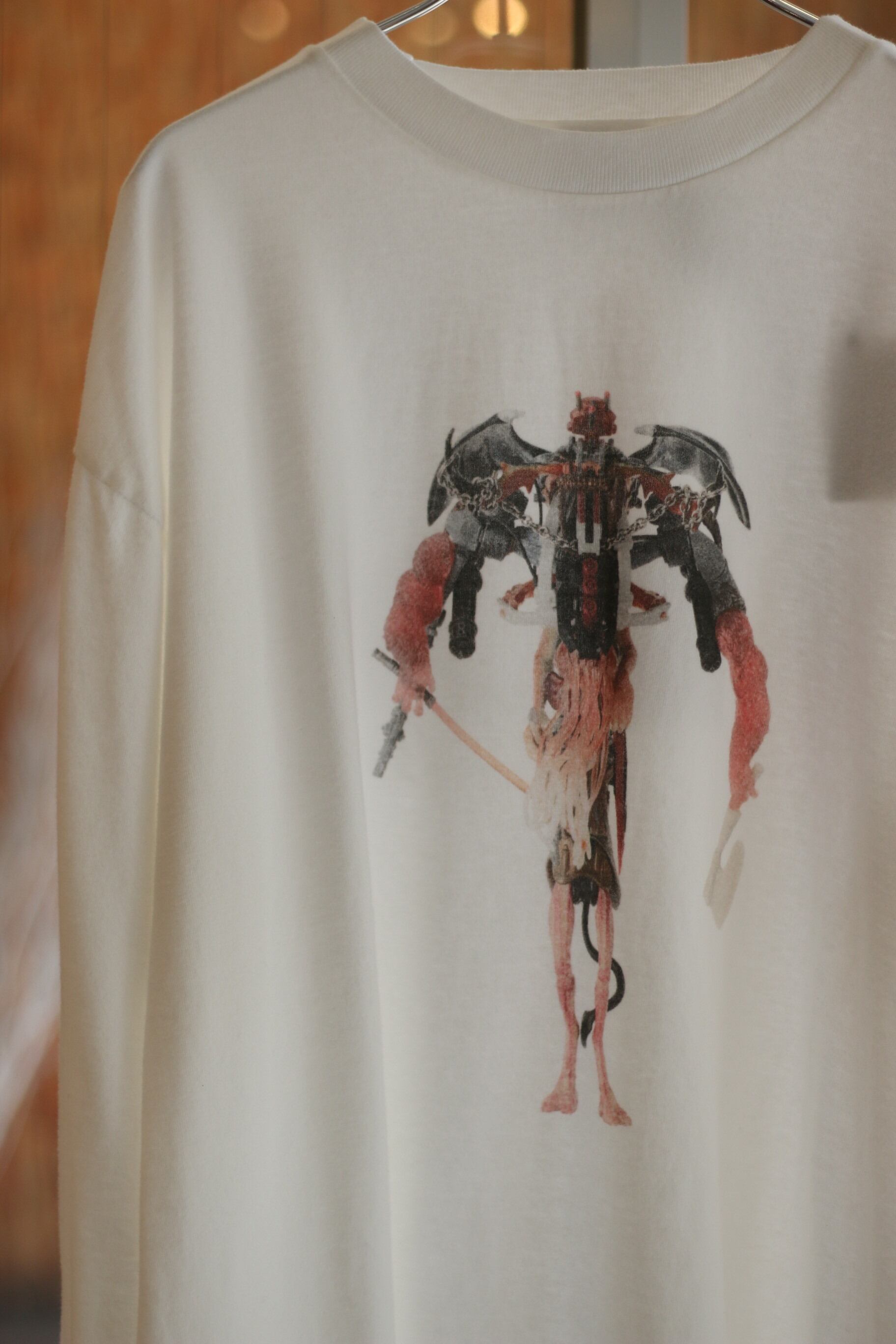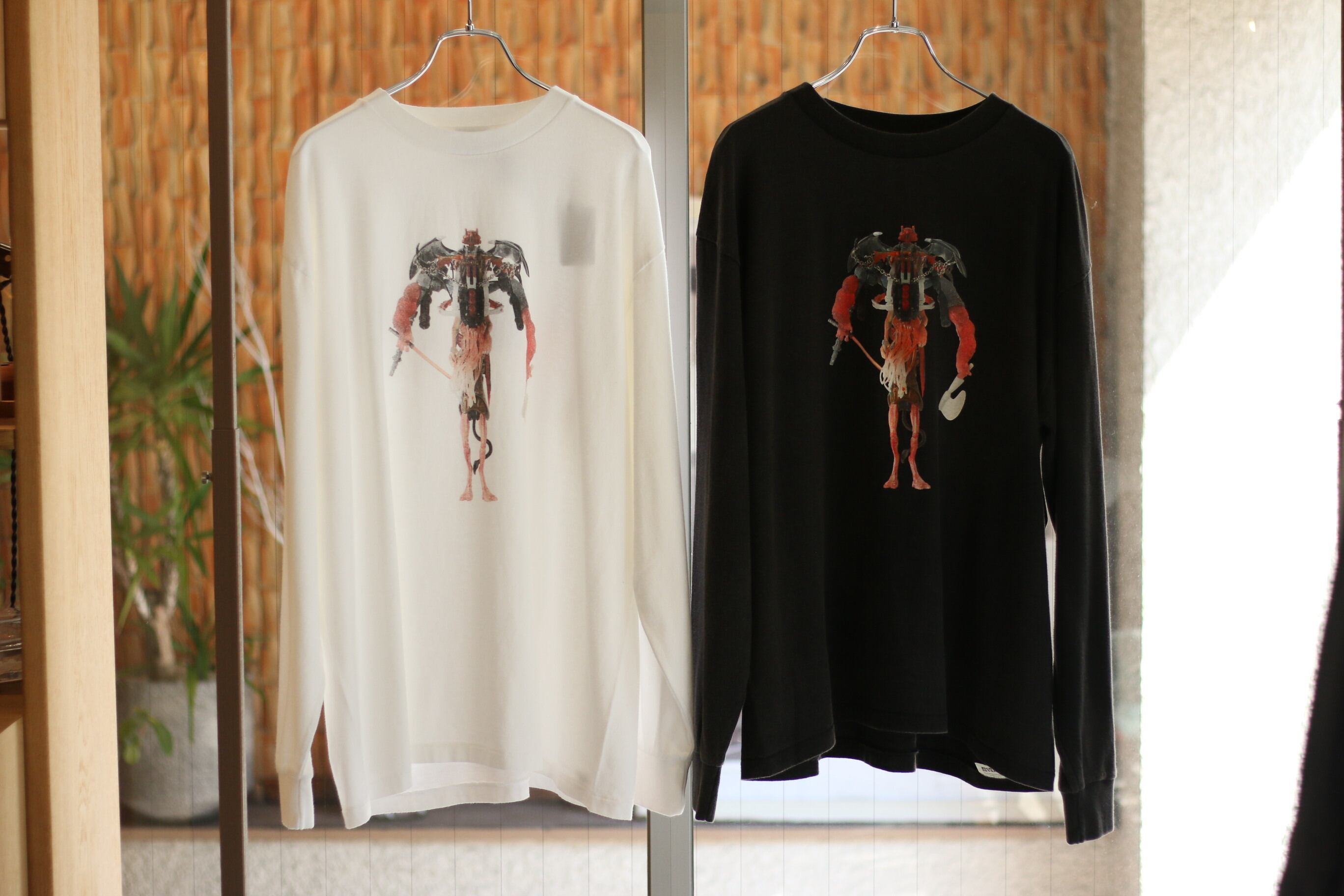 こちらは佃氏が実際に集めたフィギュアを解体し、新たな個体になるように生み出した佃氏のオリジナルアート作品をグラフィックに起こしプリントした一枚。