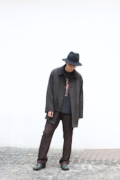 Item description : フライトジャケットやフィールドコートなどと、ハンティングジャケットの要素をミックスしたミドルレングスのミリタリーコート。