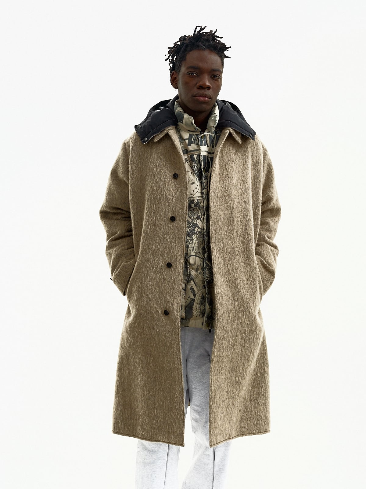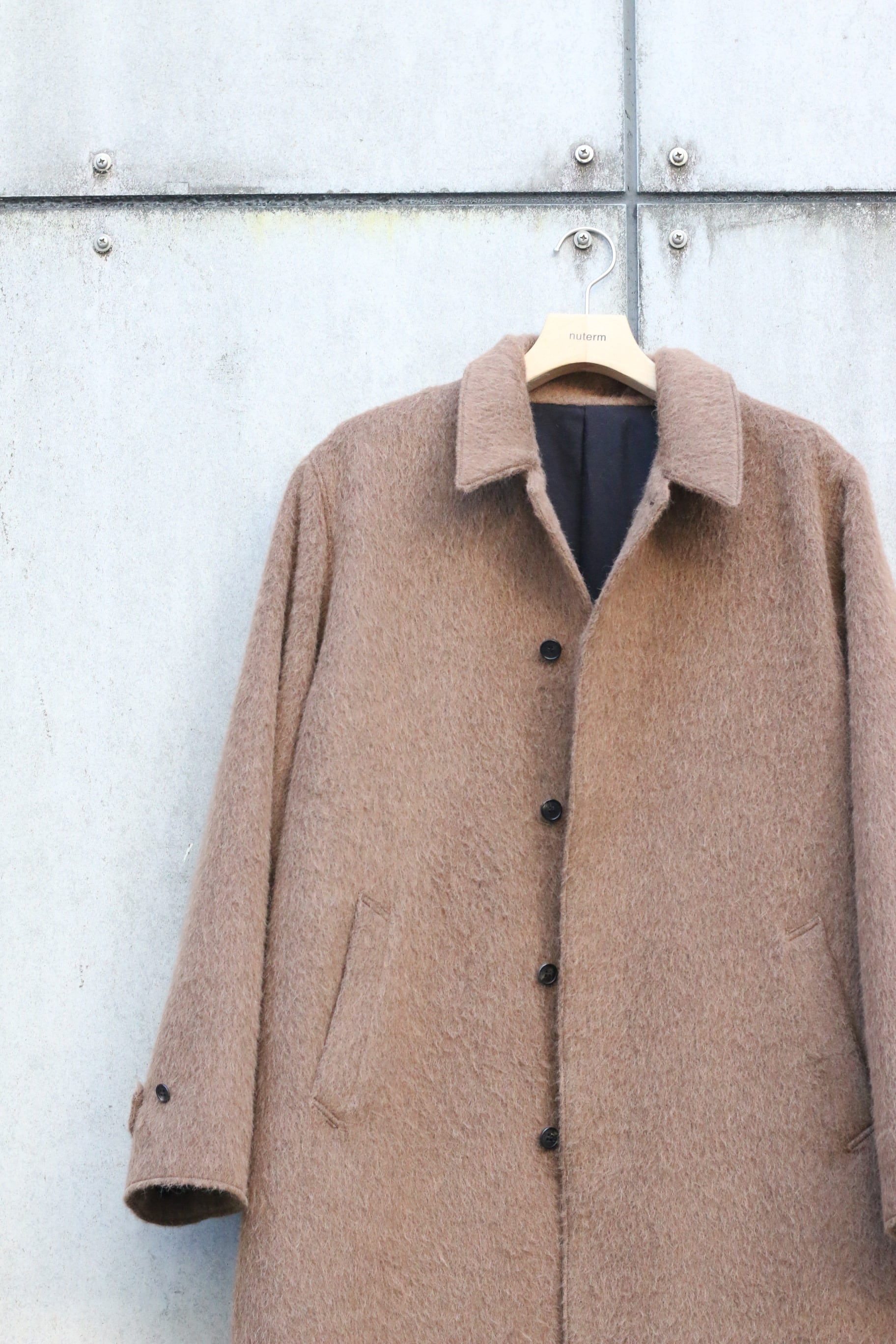 ウールアルパカのシャギー素材のコート。