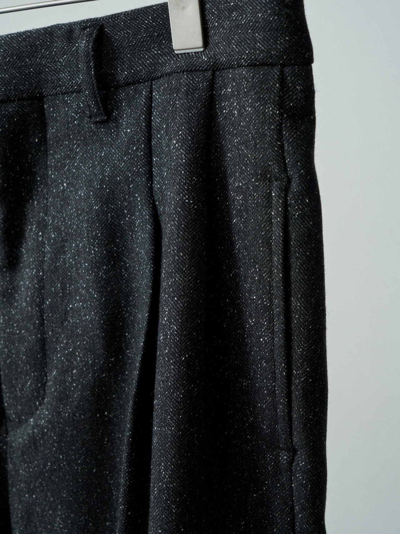 [benine 9]SILK NEP WOOL HIGH WEST TWO-TUCK SLACKS