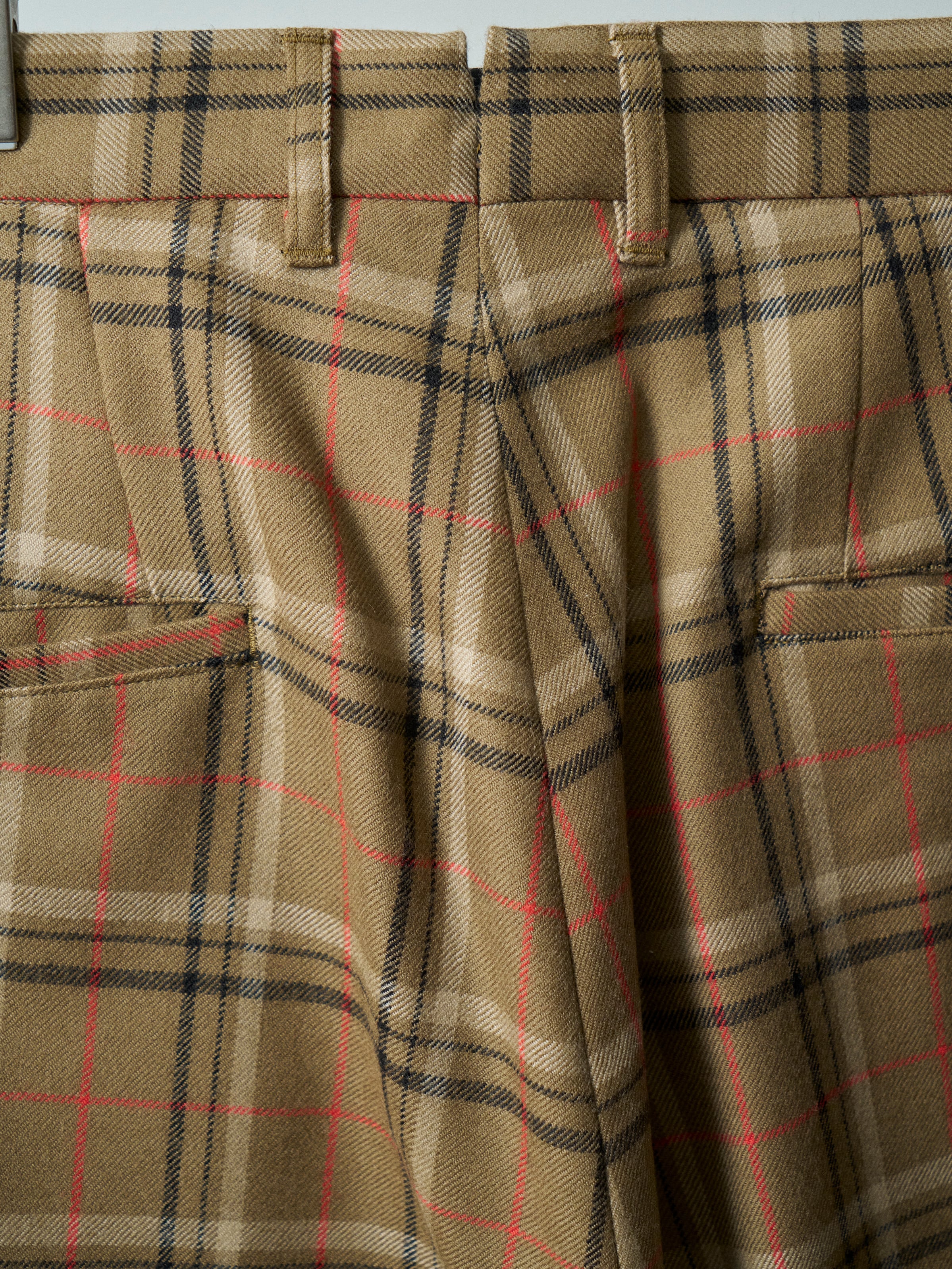 [benine 9]SAXONY CHECK WOOL HIGH WEST TOW-TUCK SLACKS