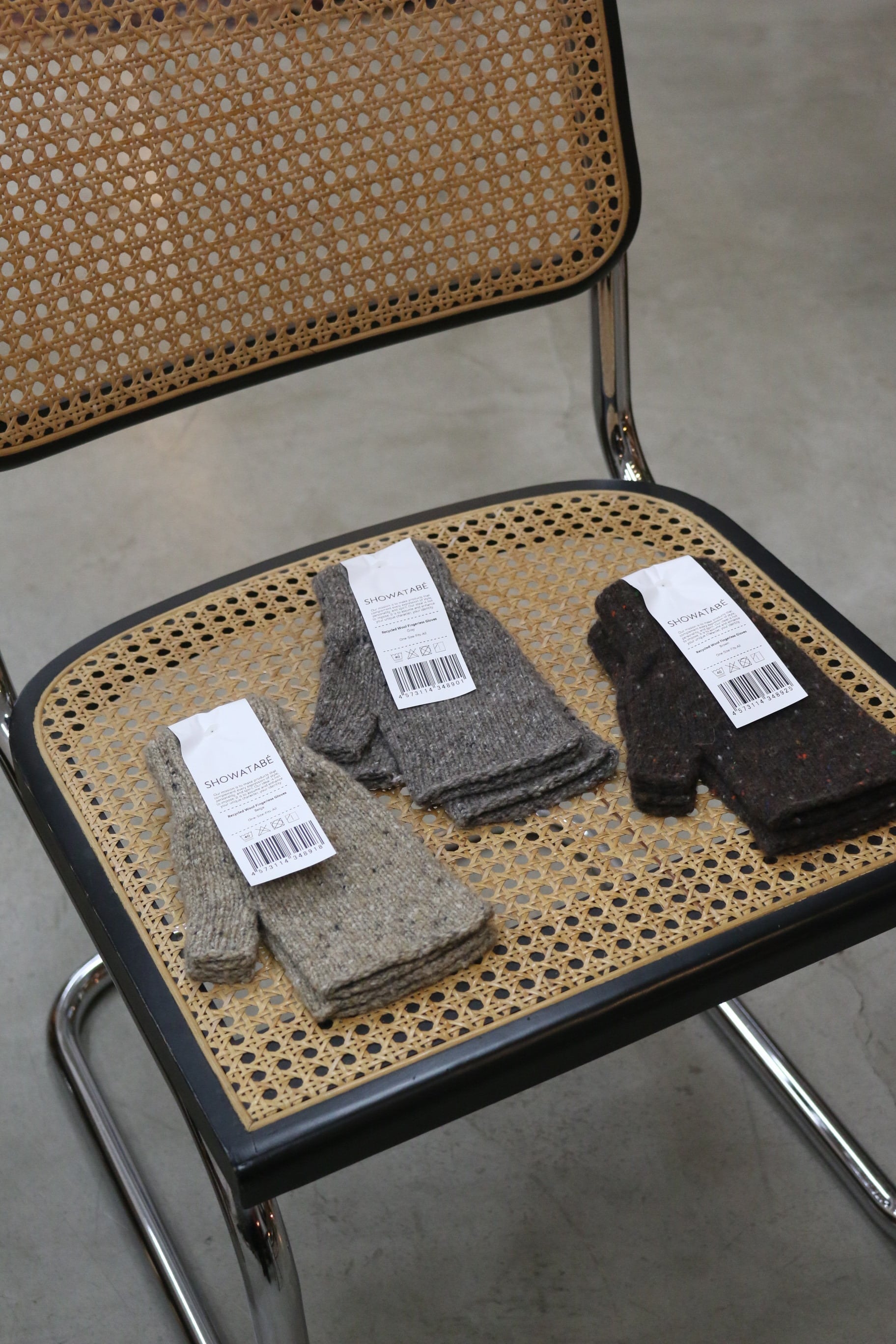 セーターのような風合いを持つ、リサイクルウールを使用したミトン型の手袋。