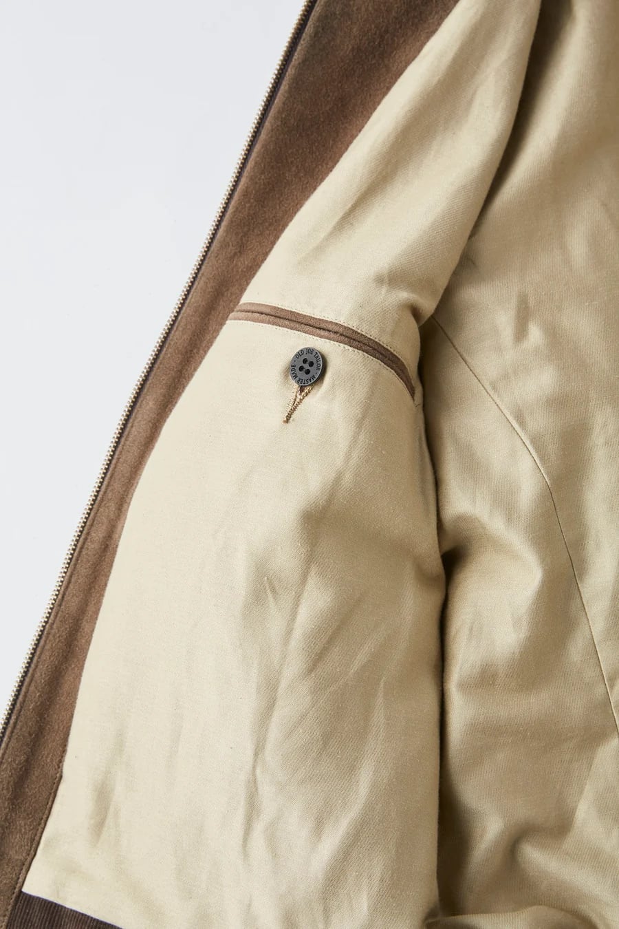 裏地にはフランダース地方で収穫したリネンを使用することで上品なスラブ感と清涼感のあるタッチが特徴の綿麻モールスキン。