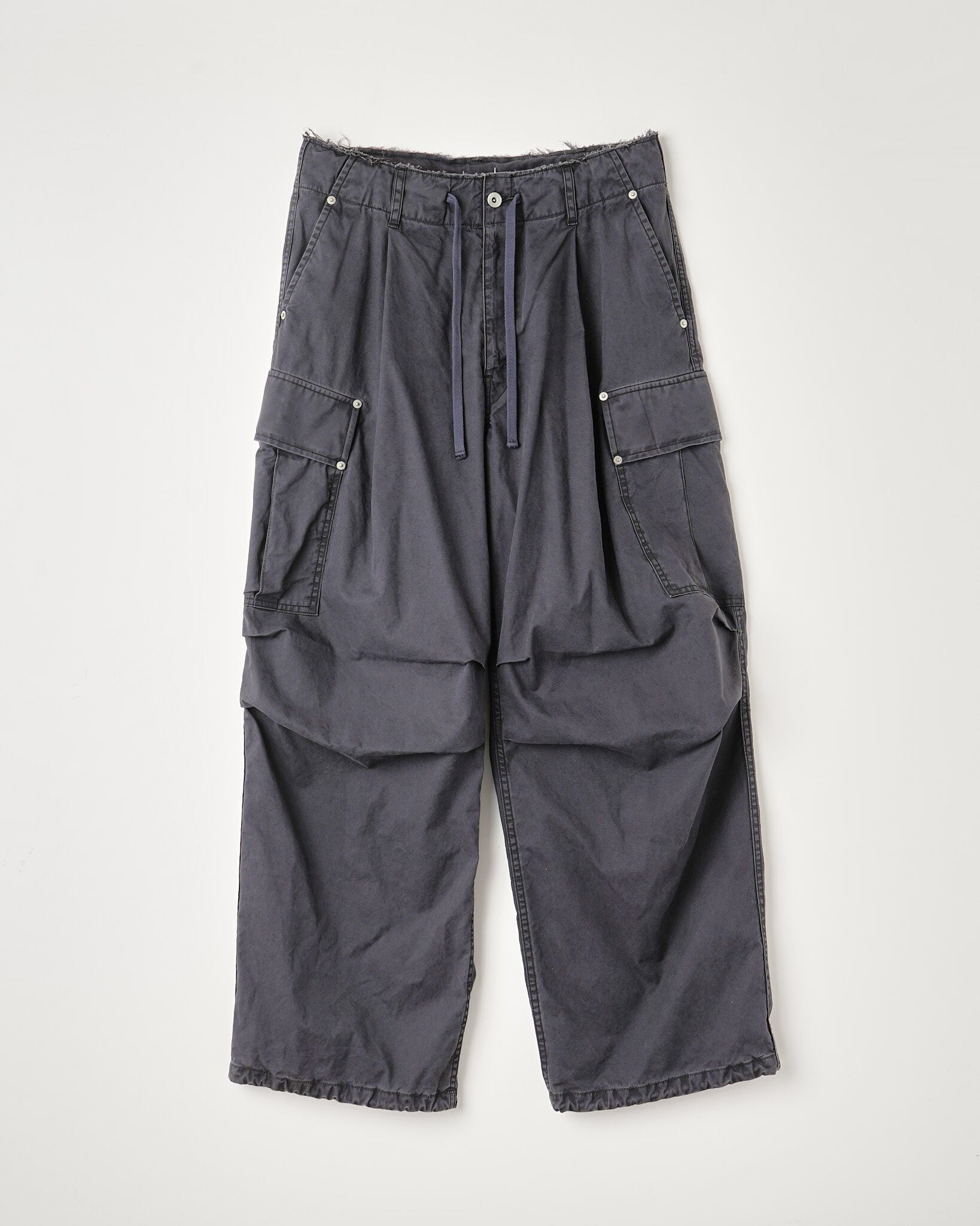 □[Name.]COTTON SERGE ONE TUCK CARGO PANTS : TELE CUT “NAVY”