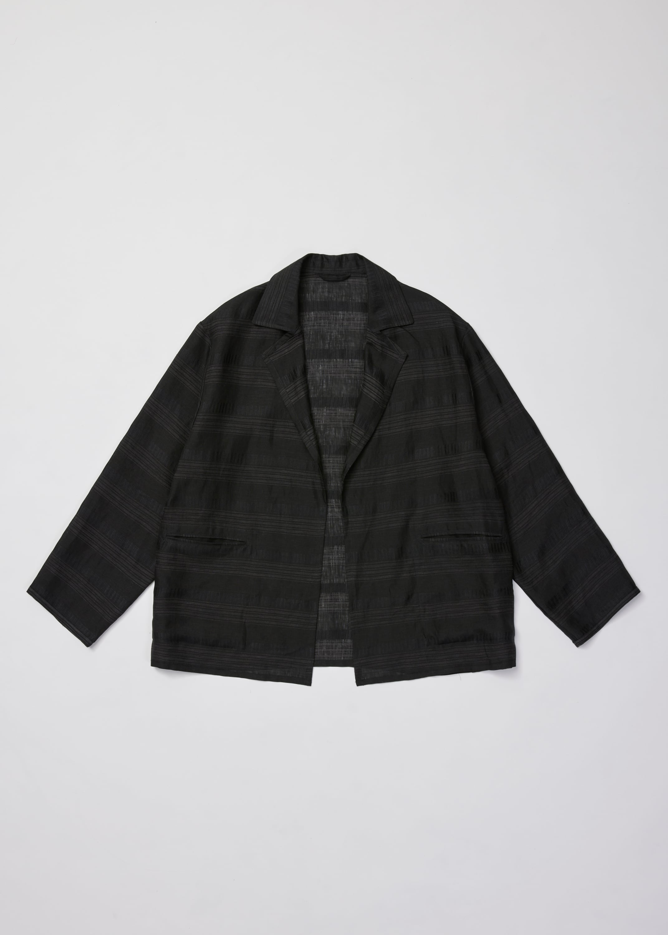 身幅に程よくゆとりを持たせながら、単衣仕立てで見返しも排除することでさらに軽さを加え、カーディンガンのようにラフに羽織る感覚で仕上げています。