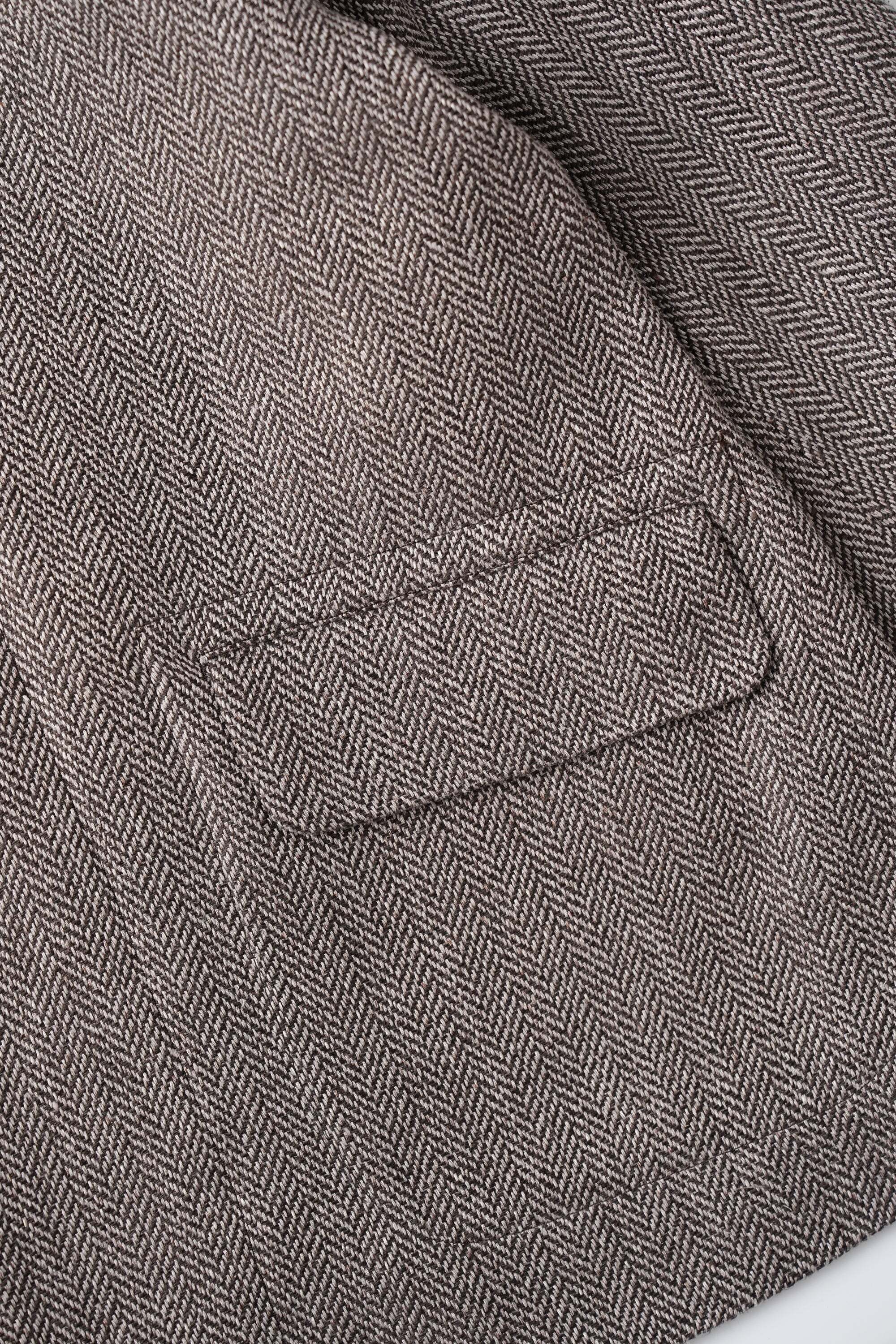 紬糸のネップ、リネンの糸節といった天然素材ゆえの不均一性が程度な意匠効果を醸し出す。