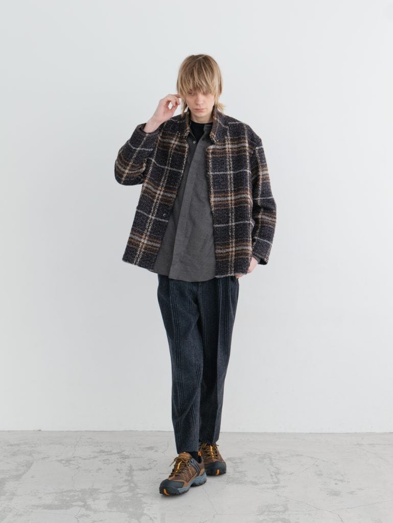 パンツのシルエットと、クラシカルな雰囲気の生地マッチ具合は完璧と言えるでしょう。
